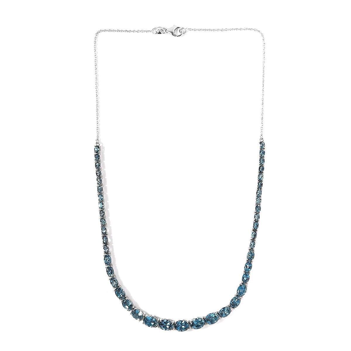 London Blue Topaz Tennis Necklace 18 Inches in Platinum Over Sterling Silver 22.10 ctw