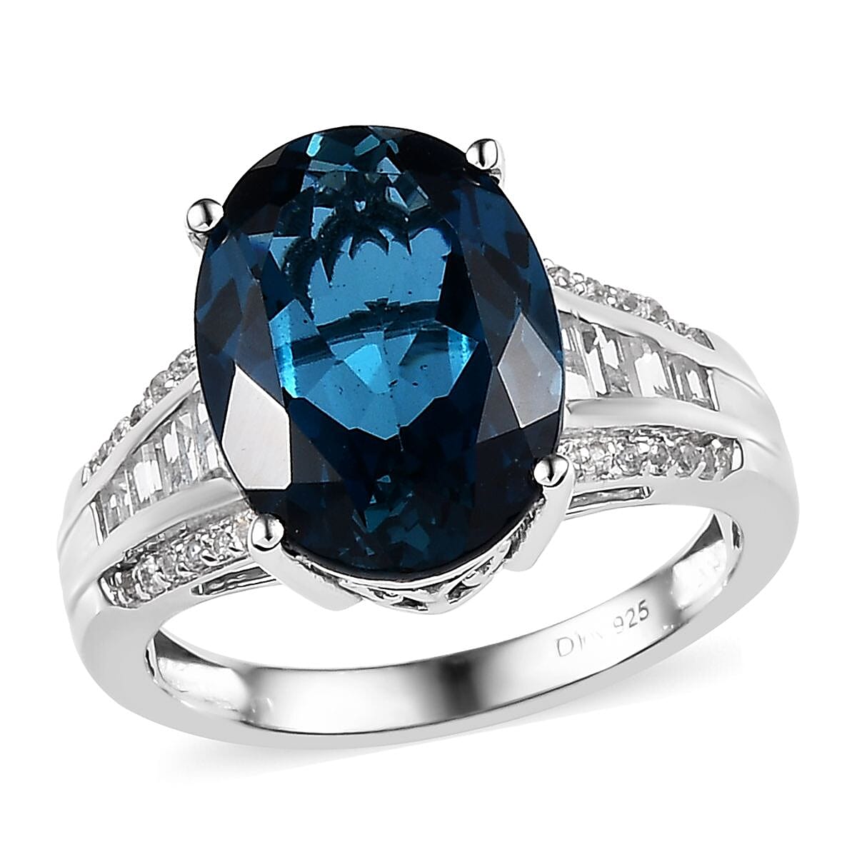 London Blue Topaz, White Topaz Ring in Platinum Over Sterling Silver (Size 10.0) 6.65 ctw