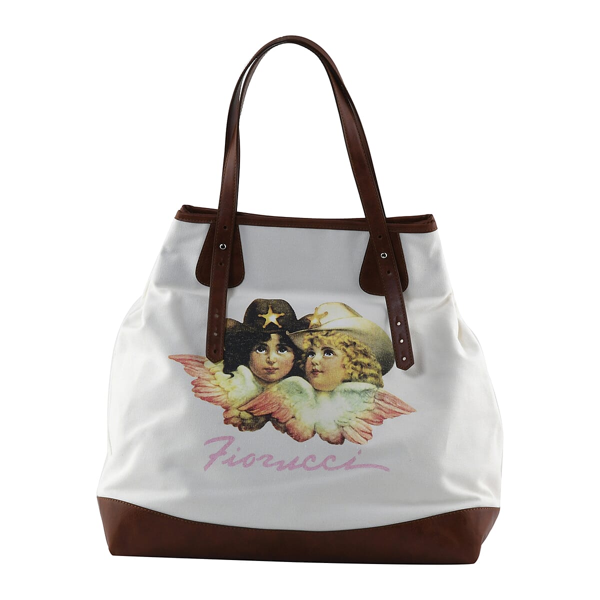 London Closeout FIORUCCI White, Black 80% Cotton and 20% Polyurethane Angle Pattern Shopper Bag (15.75x6.70x15.75)