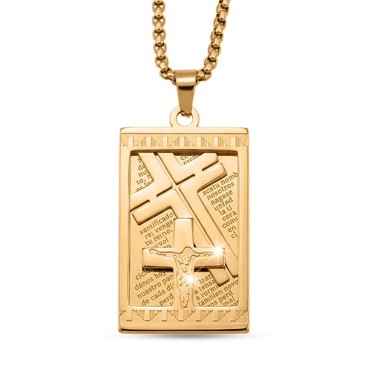 Lords Prayer Crucifix Dogtag Necklace ION Plated YG Stainless Steel 22 Inches