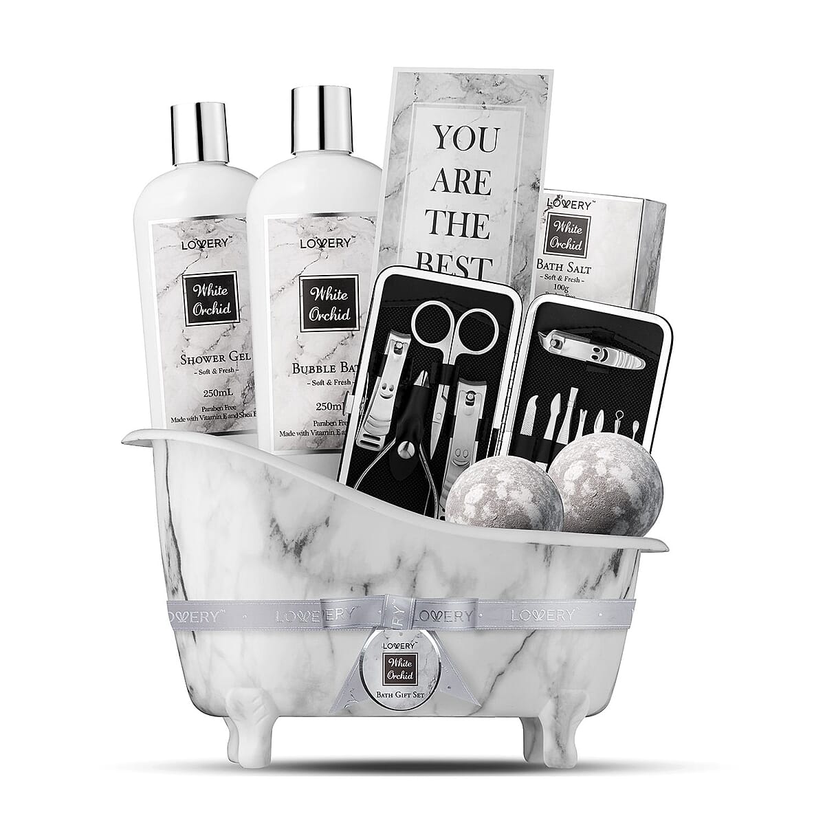 LOVERY White Marble Tub 20pc White Orchid Bath & Body Basket