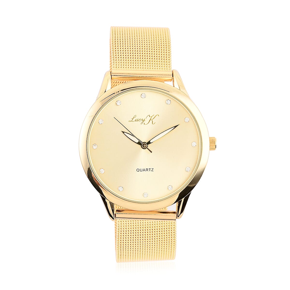 LUCY K Quartz Movement Watch with Sunray Dial and ION Plated YG Stainless Steel Mesh Strap