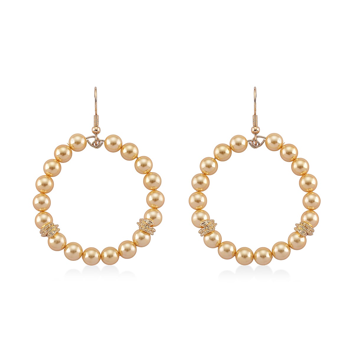 Lumina Pearl Golden Color Hoop Earrings in Goldtone and ION Plated YG Stainless Steel
