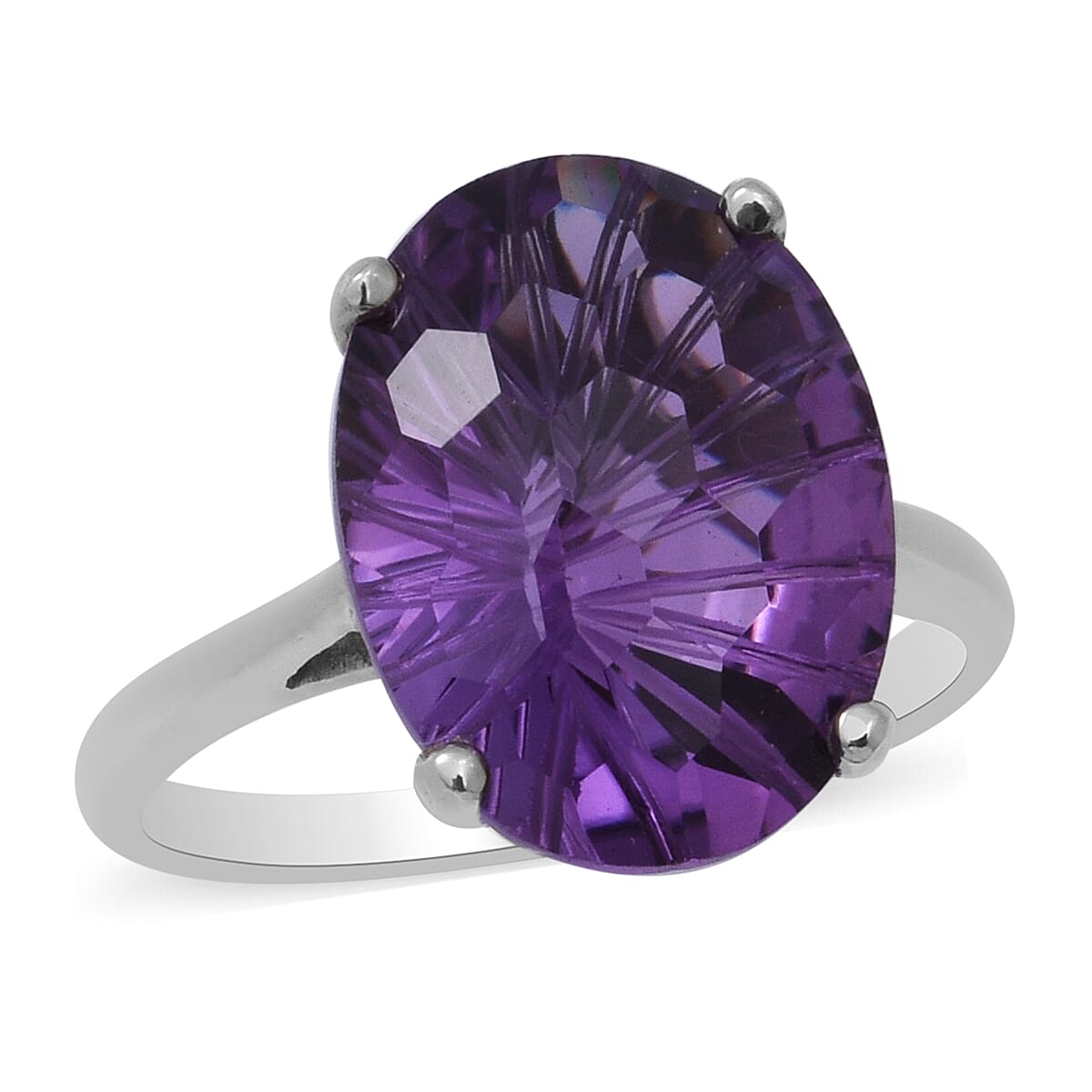 Lusaka Amethyst Solitaire Ring in Platinum Over Sterling Silver (Size 6.0) 9.80 ctw
