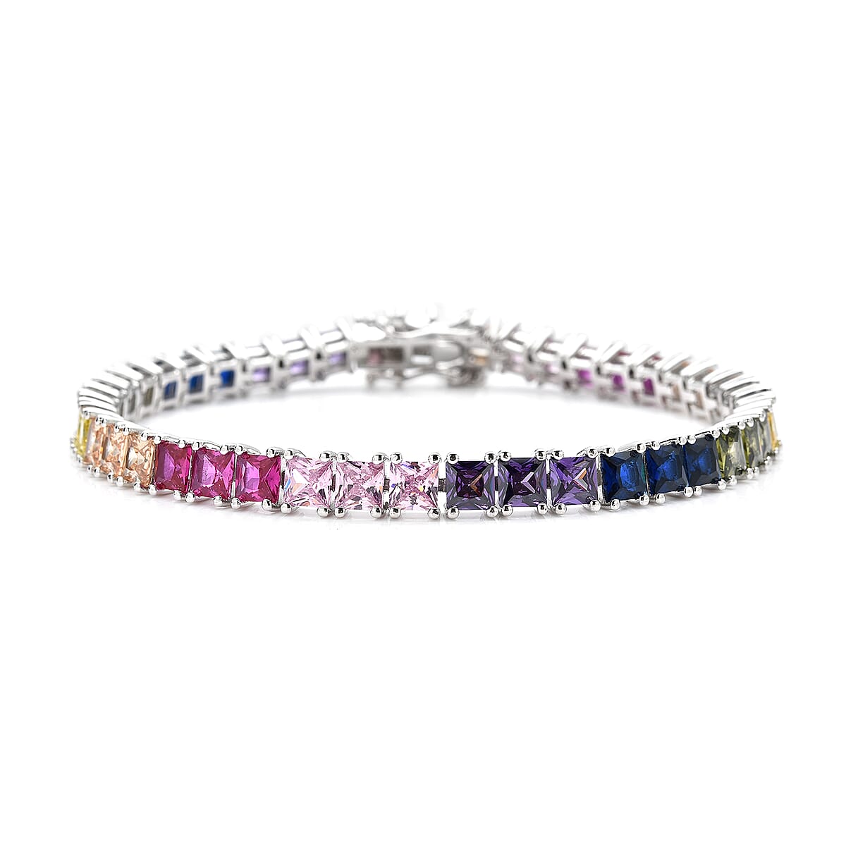 LUSTRO STELLA Premium Multii Color Cubic Zirconia Tennis Bracelet in Sterling Silver (6.50 In) 11.20 Grams 21.00