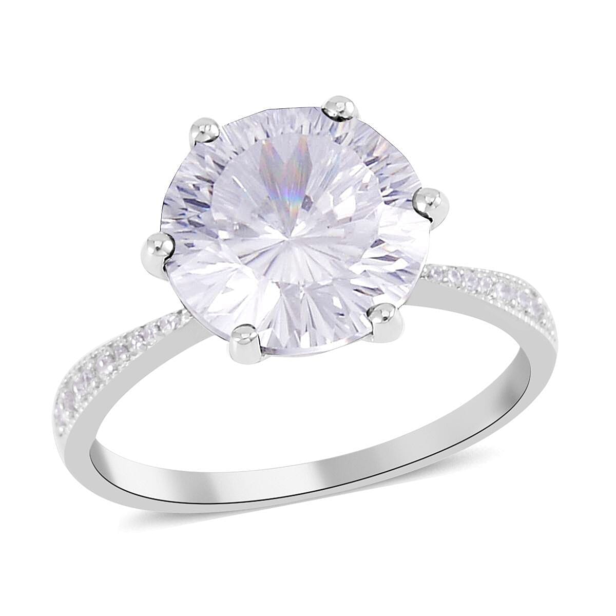 Lustro Stella Concave Cut Finest CZ Ring in Platinum Over Sterling Silver (Size 7.0) 12.10 ctw