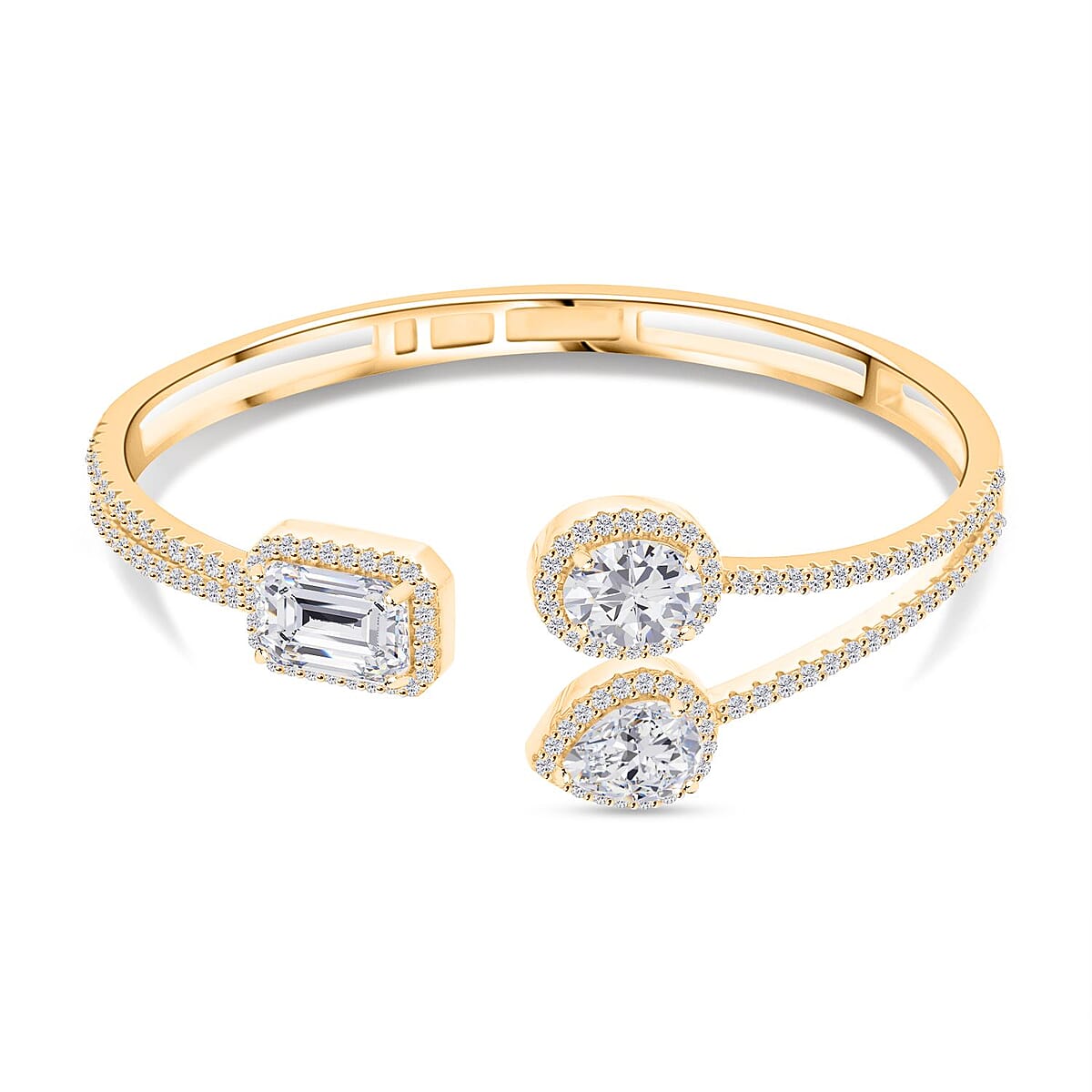 Lustro Stella Finest CZ Bangle Bracelet in 14K Yellow Gold Over Sterling Silver (7.50 In)