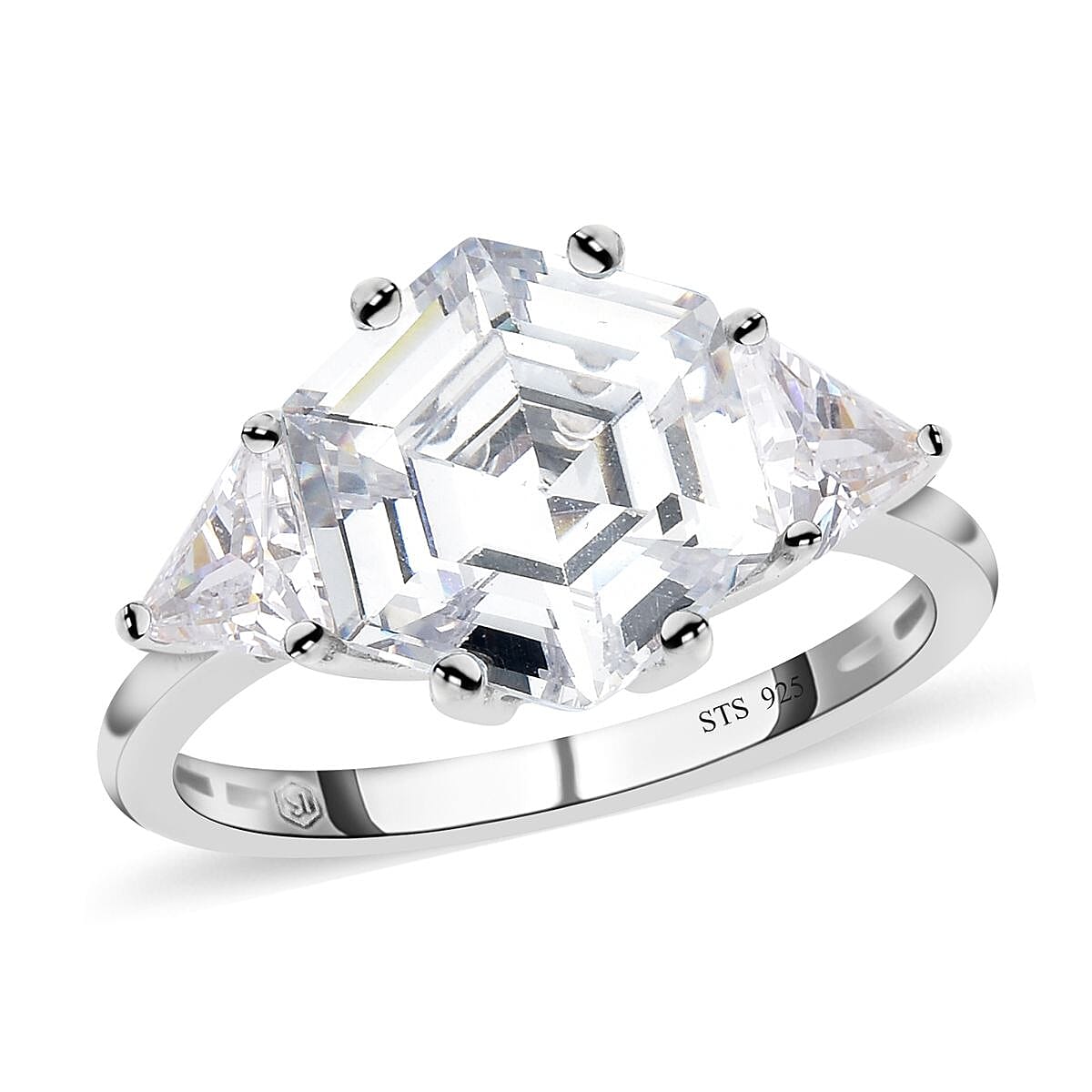 Make an upgraded style statement with confidence with this finest cubic zirconia ring. Noticing this hexagonal forefront ring on your finger will make the onlookers interested in you as they let you don a sassy persona. The ring beautifully captures the beauty of premium cubic zirconia, studded at the forefront with hexagonal-shaped CZ in the center and triangle-shaped CZ on the ring shoulders. The ring is molded in the unmatchable sheen of sturdy platinum-plated sterling silver. Zirconias from Lustro Stella is always an enchanting add-on to a wide range of jewelry. They rank 8.5 on the Mohs scale of hardness.