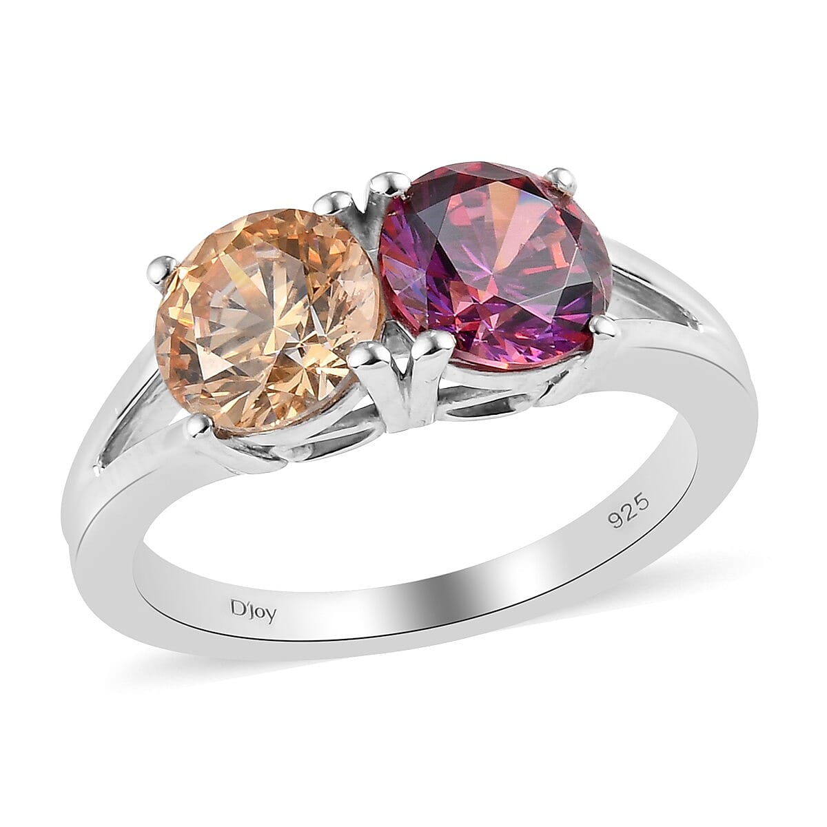 Give your appearance a relaxed and glowing look with this amber and dark red premium cubic zirconia ring. The unique two stone placement of finest cubic zirconia makes this piece look stunning enough to impress everyone around you. Amber and dark red colored CZ roundels are closely set as a pair on the ring’s center head to display two lustrous tones. Finished in platinum over sterling silver, the jewel has a glossy touch for a more excellent shimmer and comfort of wearing.