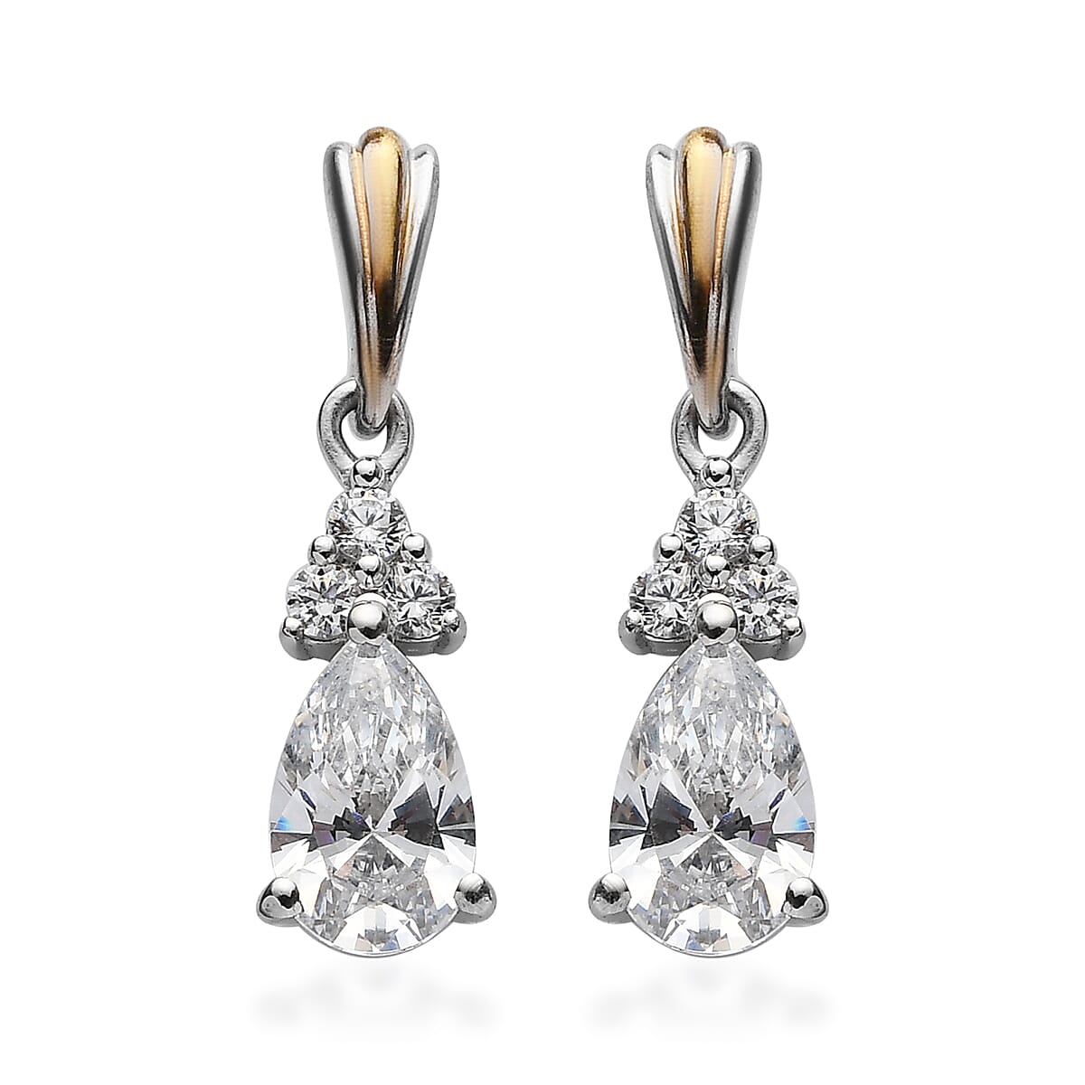 Lustro Stella Made with Finest CZ Drop Earrings in 14K Yellow Gold and Platinum Over Sterling Silver 3.00 ctw