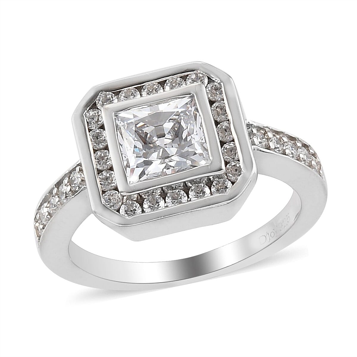 Lustro Stella Made with Finest CZ Halo Ring in Platinum Over Sterling Silver (Size 7.0) 3.00 ctw