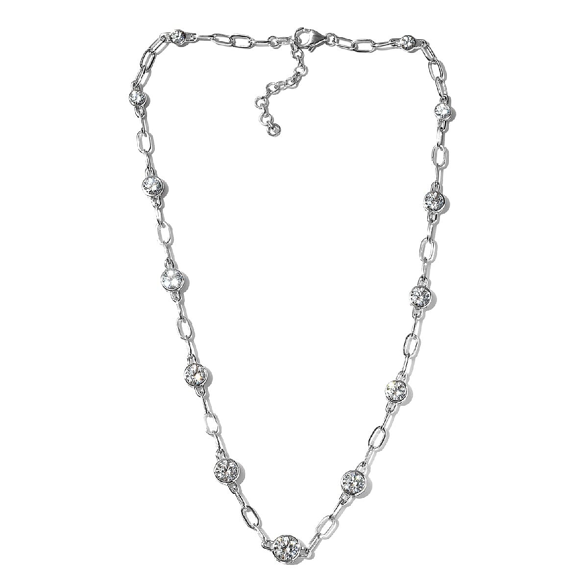 Lustro Stella Made with Finest CZ Paper Clip Station Necklace 18 Inches in Platinum Over Sterling Silver 19.15 ctw