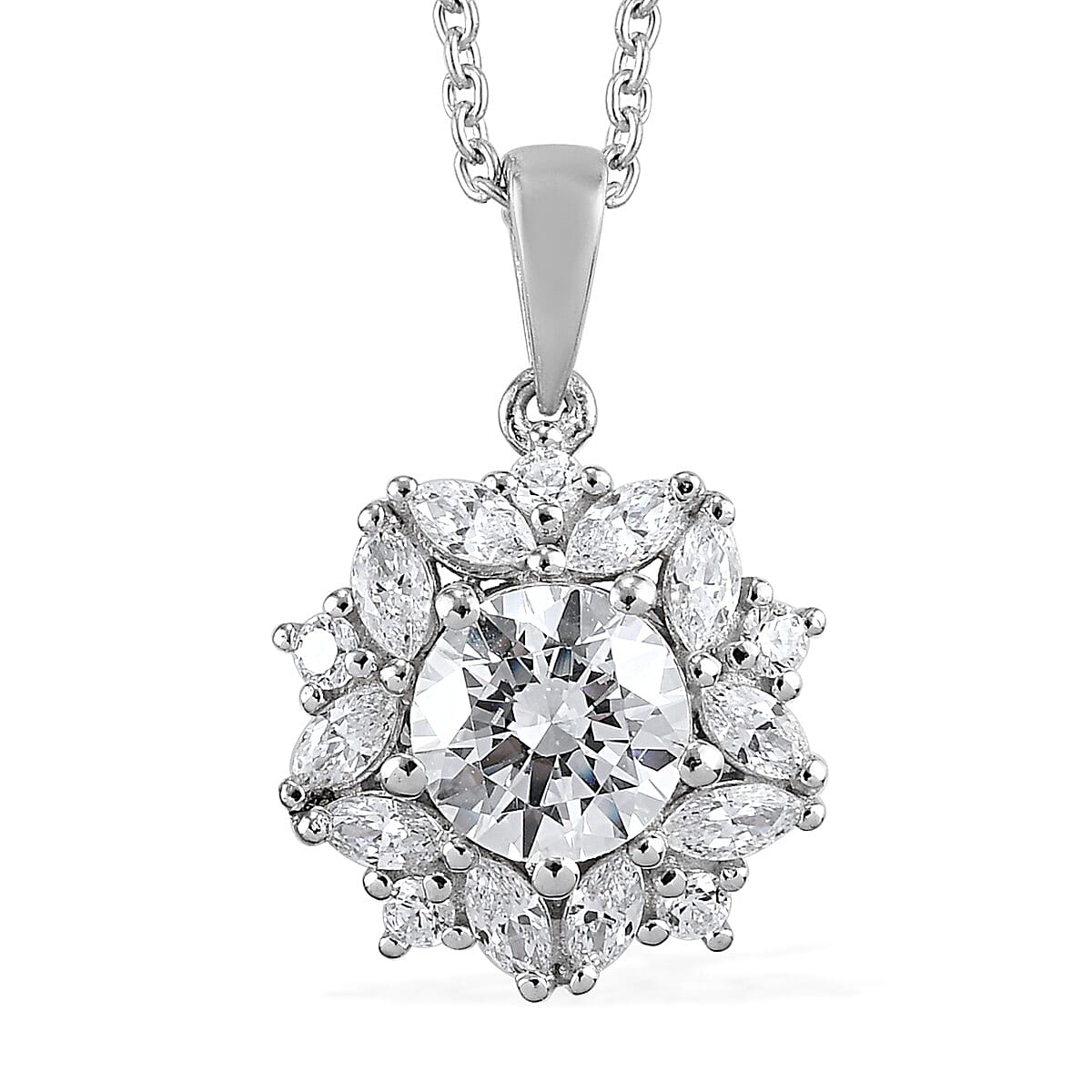 Lustro Stella Made with Finest CZ Pendant Necklace 20 Inches in Platinum Over Sterling Silver 4.20 ctw