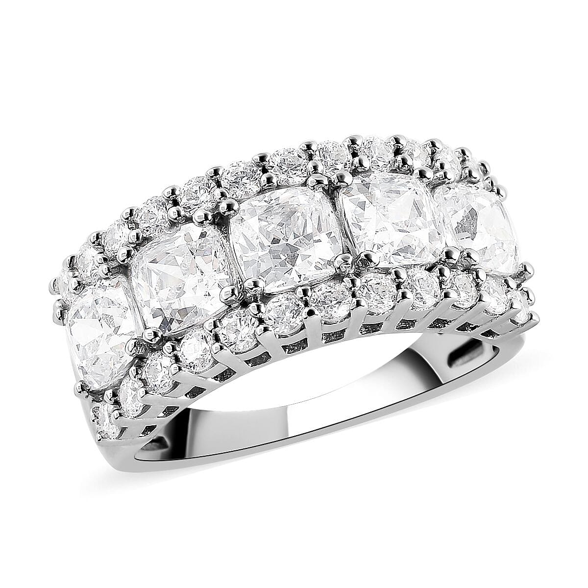 Lustro Stella Made with Finest CZ Ring in Rhodium Over Sterling Silver (Size 7.0) 7.60 ctw
