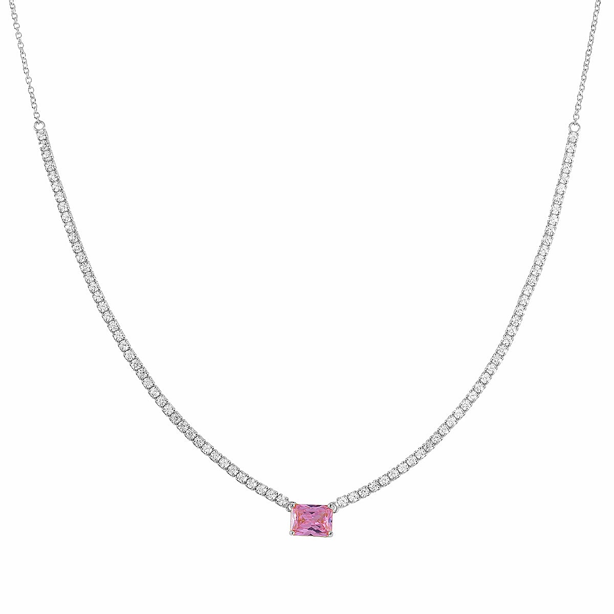 Lustro Stella Pink and White Finest CZ Necklace (16-18 Inches) in Rhodium Over Sterling Silver 10.50 ctw