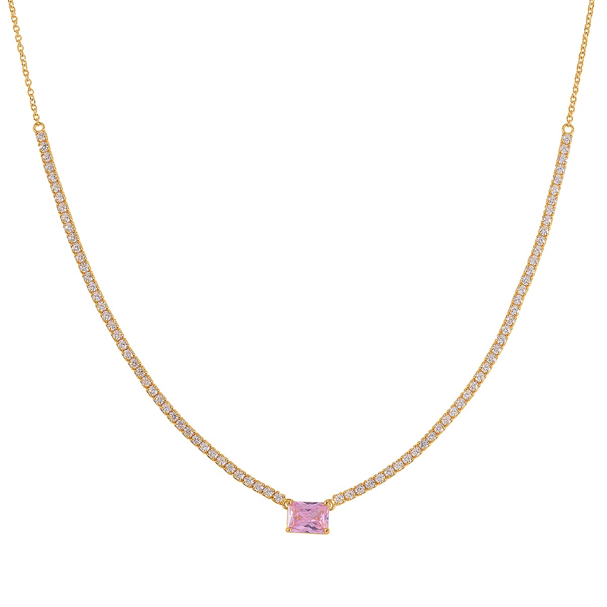 Lustro Stella Pink and White Finest CZ Necklace 16-18 Inches in Vermeil Yellow Gold Over Sterling Silver 10.50 ctw