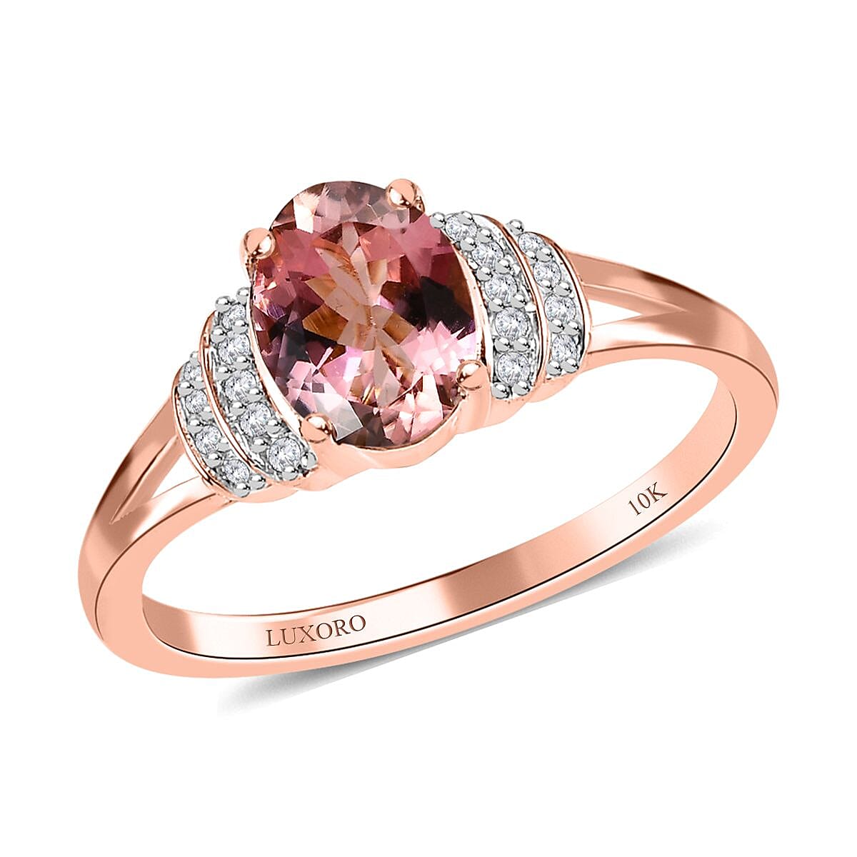 Luxoro 10K Rose Gold Premium Morro Redondo Pink Tourmaline and Moissanite Ring (Size 6.0) 1.35 ctw