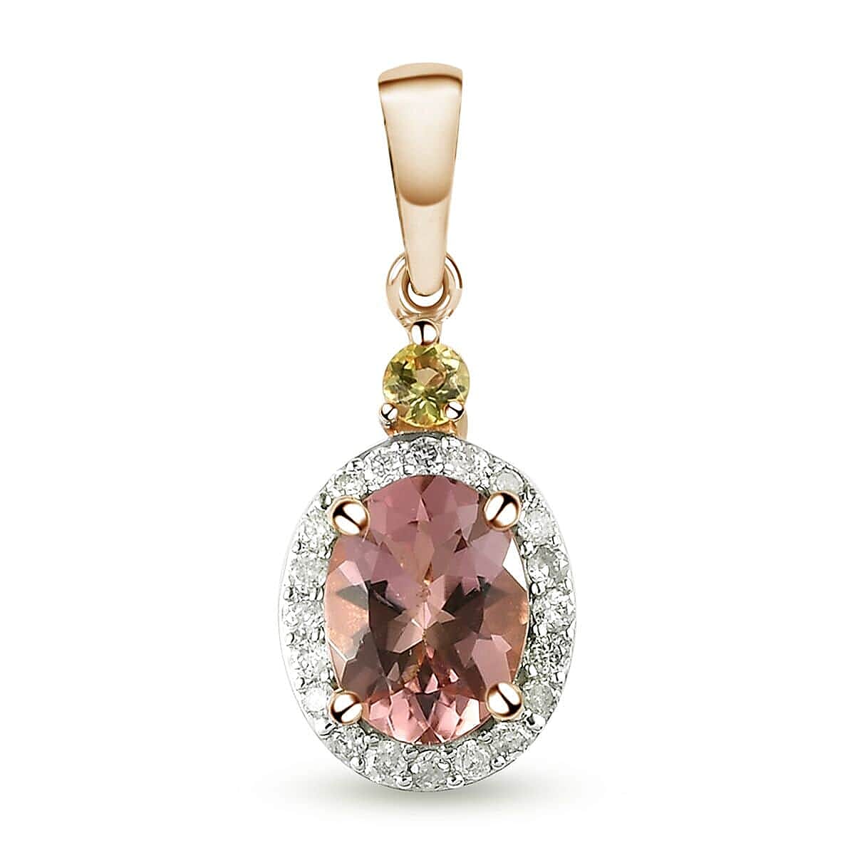 Luxoro 10K Rose Gold Premium Natural Blush and Canary Tourmaline and Diamond Halo Pendant 2.50 ctw