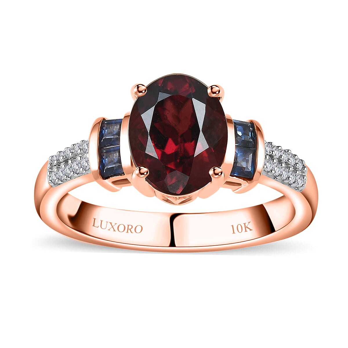 Luxoro 10K Rose Gold Premium Tanzanian Wine Garnet and Blue Sapphire and G-H I2 Diamond Ring (Size 7.0) 2.60 ctw