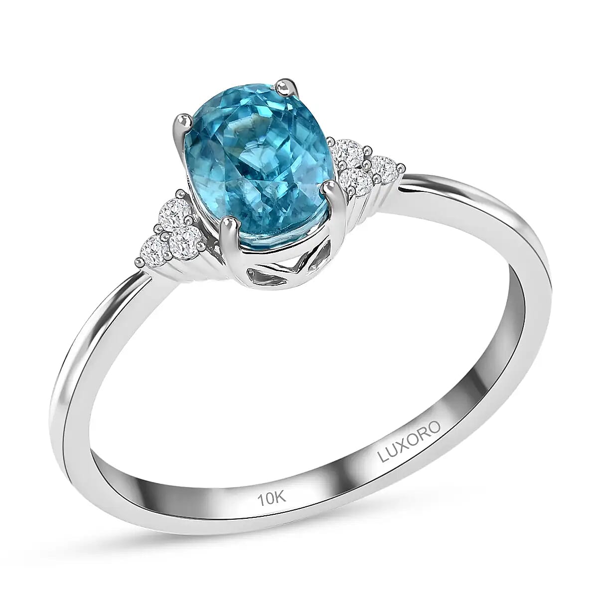 Luxoro 10K White Gold AAA Blue Zircon Ring, Diamond Ring, Wedding Rings (Size 10.5) 2.55 ctw