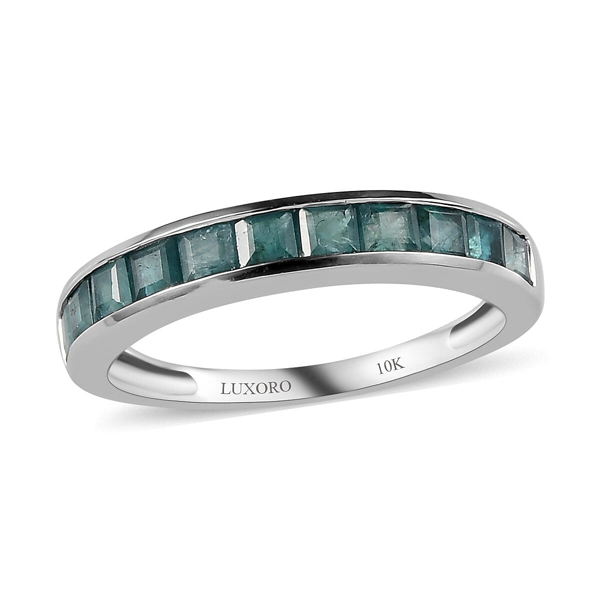 Luxoro 10K White Gold AAA Grandidierite Half Eternity Band Ring (Size 10.0) 1.10 ctw