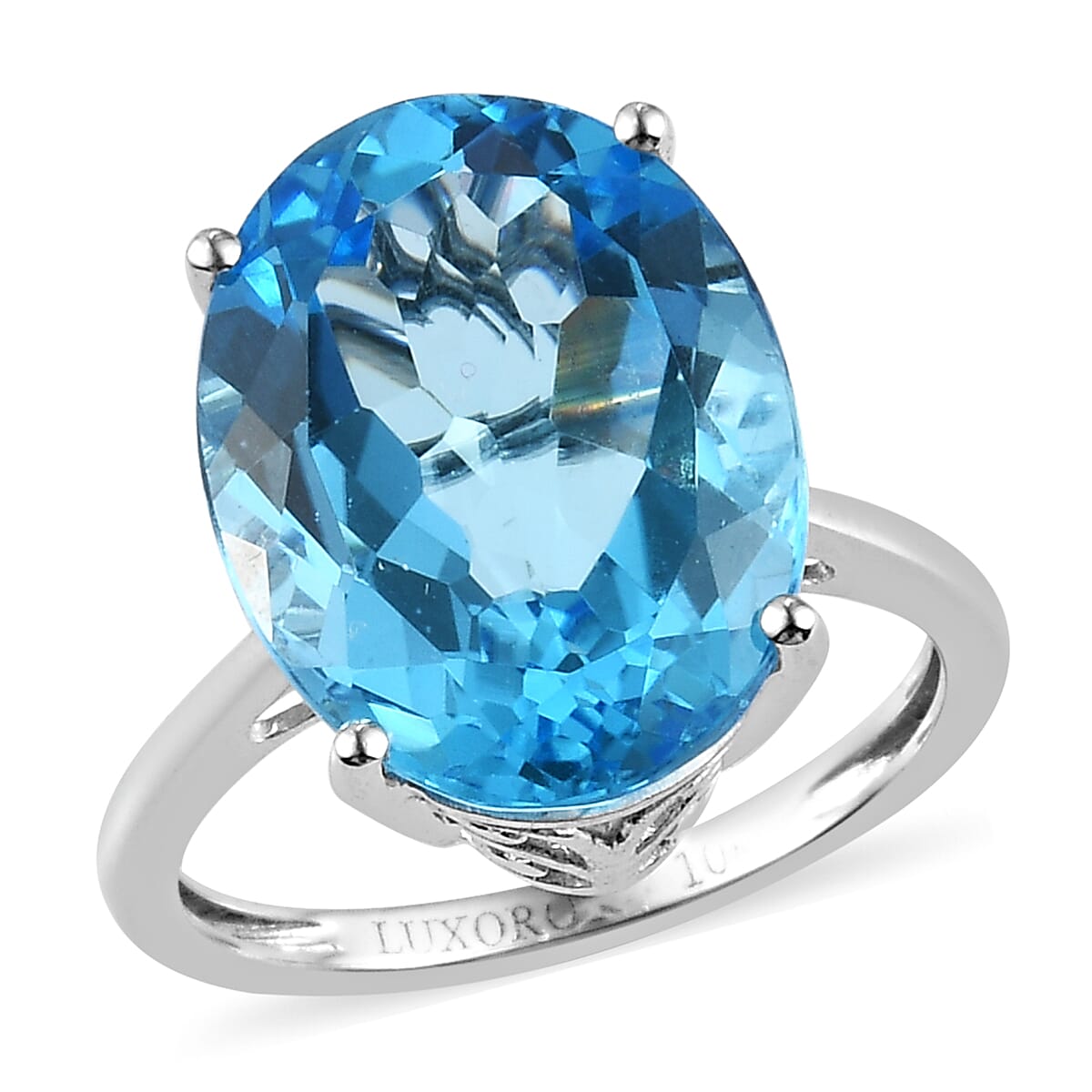 Luxoro 10K White Gold AAA Swiss Blue Topaz Solitaire Ring (Size 8.0) 11.85 ctw