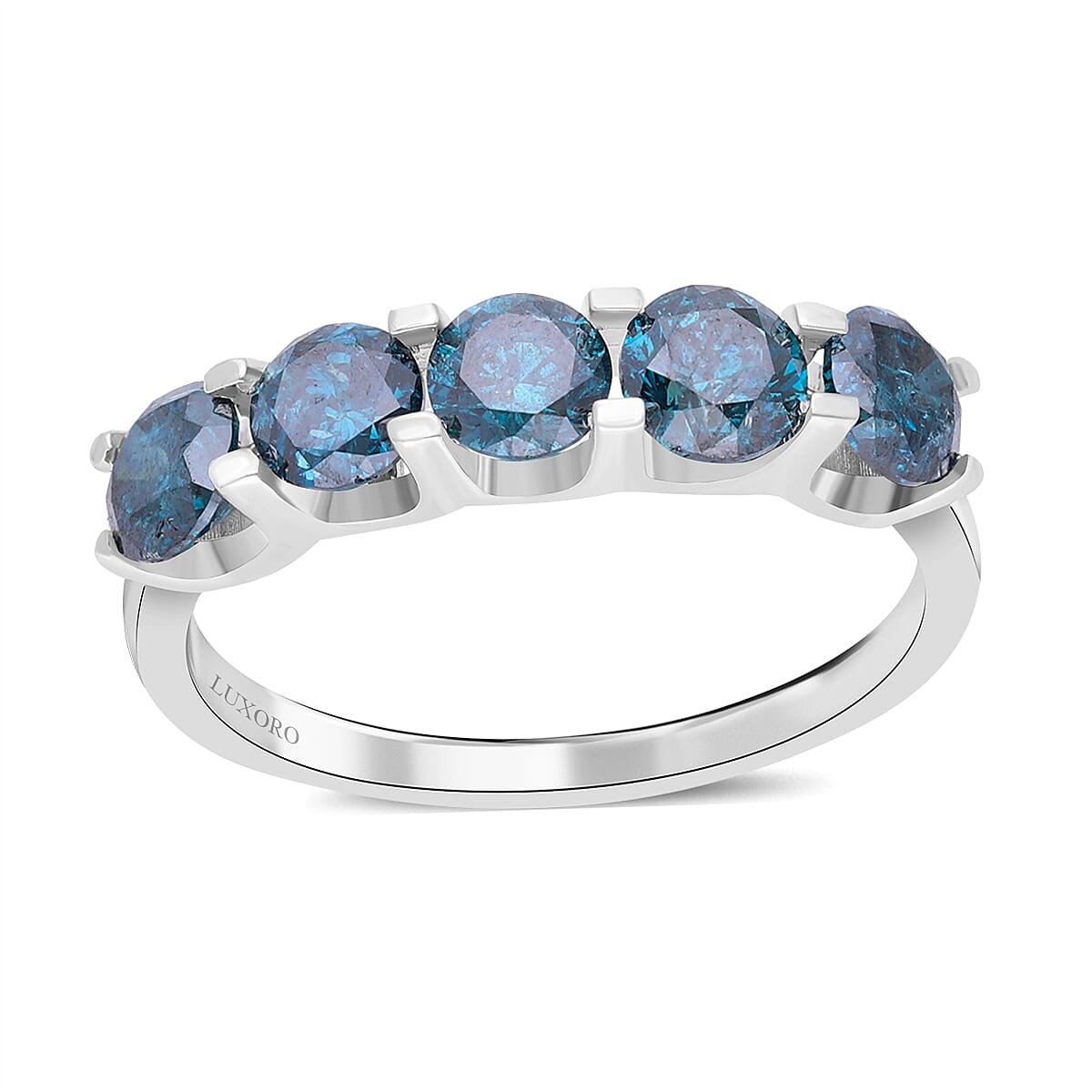 Luxoro 10K White Gold Blue Diamond 5 Stone Ring, Promise Rings (Size 8.5) 2.00 ctw
