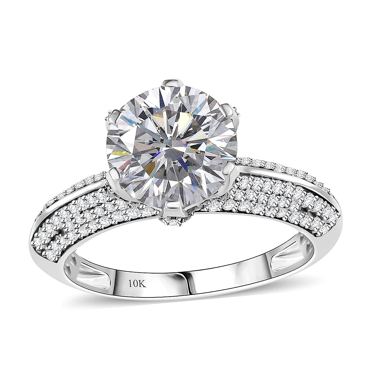 Luxoro 10K White Gold Moissanite (Rnd 10mm) Crown Ring (Size 11.5) 5.60 ctw