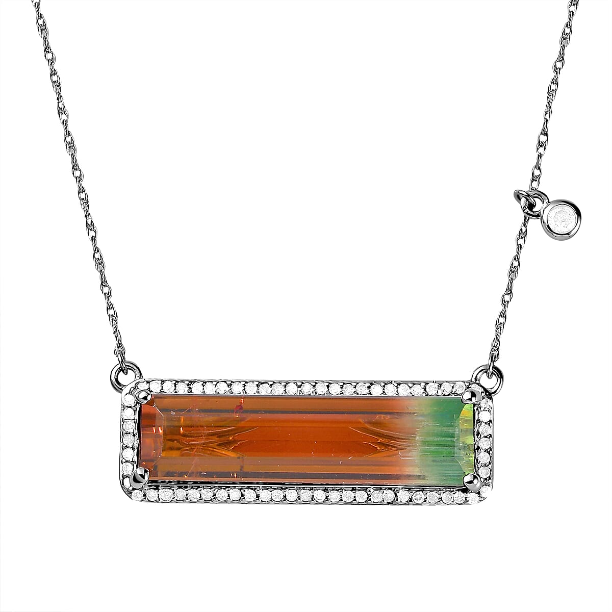 Luxoro 10K White Gold Premium Bi-Color Tourmaline and G-H I3 Diamond Necklace 18 Inches 11.50 ctw