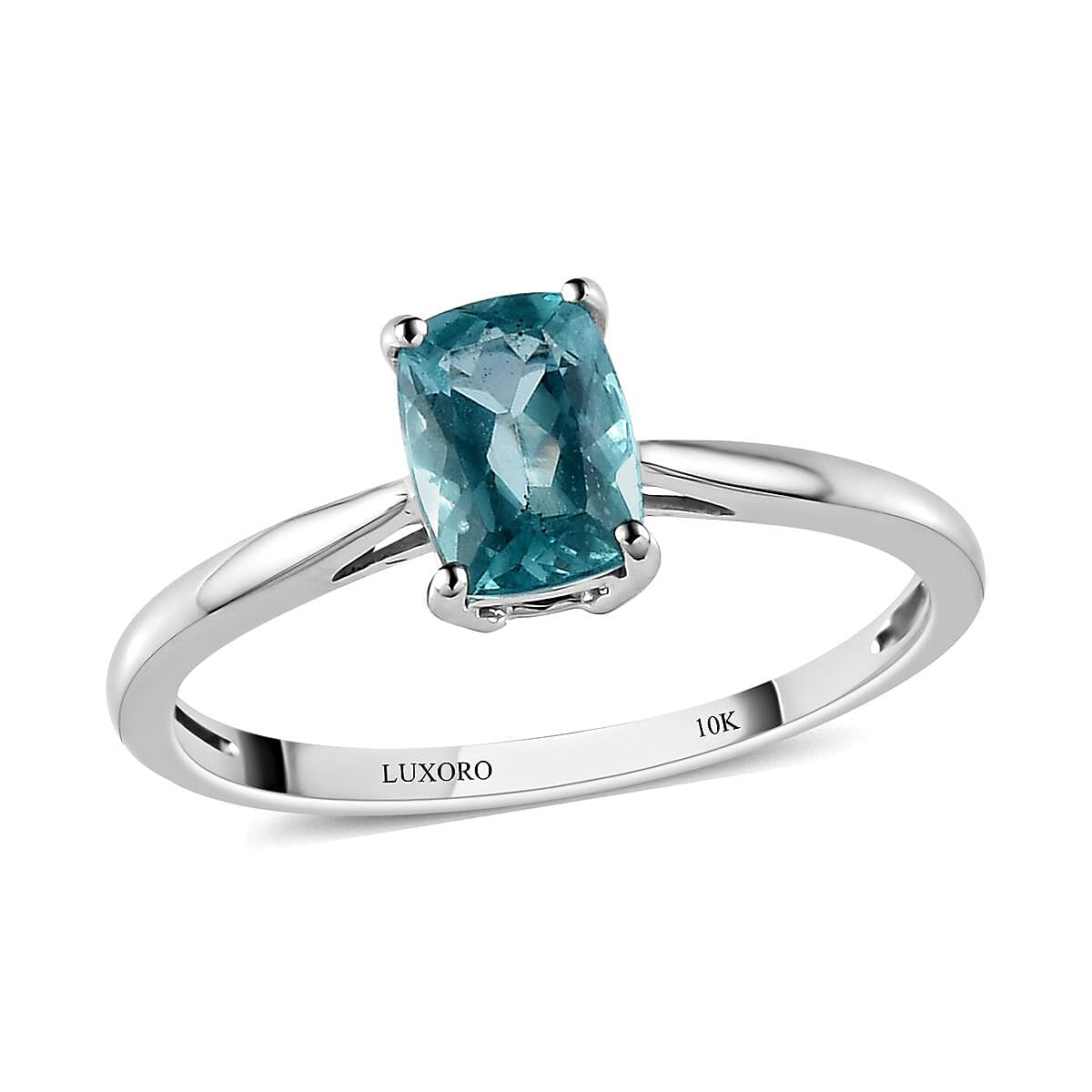 Luxoro 10K White Gold Premium Madagascar Paraiba Apatite Solitaire Ring (Size 5.0) 0.90 ctw
