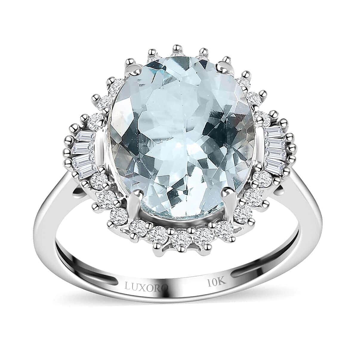 Luxoro 10K White Gold Premium Mangoro Aquamarine and Diamond Halo Ring (Size 7.5) 4.40 ctw