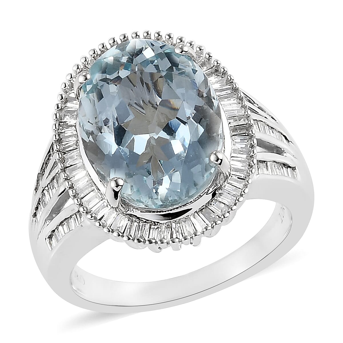 Luxoro 10K White Gold Premium Mangoro Aquamarine (OVL 14x10), Diamond (G-H, I3) (0.45 cts) Ring (Size 7.0) (6.10 g) 5.85 ctw
