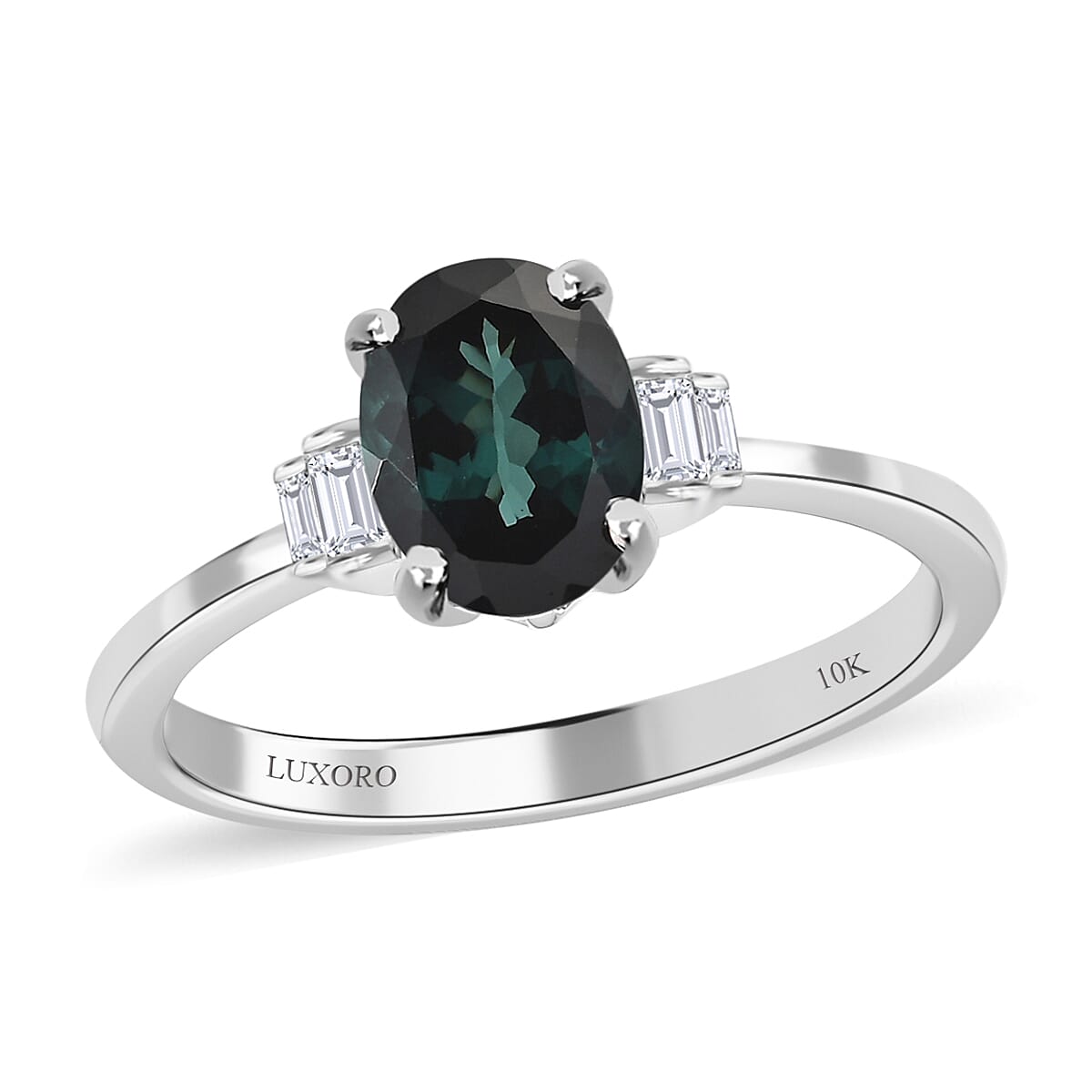 Luxoro 10K White Gold Premium Monte Belo Indicolite and G-H I3 Diamond Ring 1.50 ctw