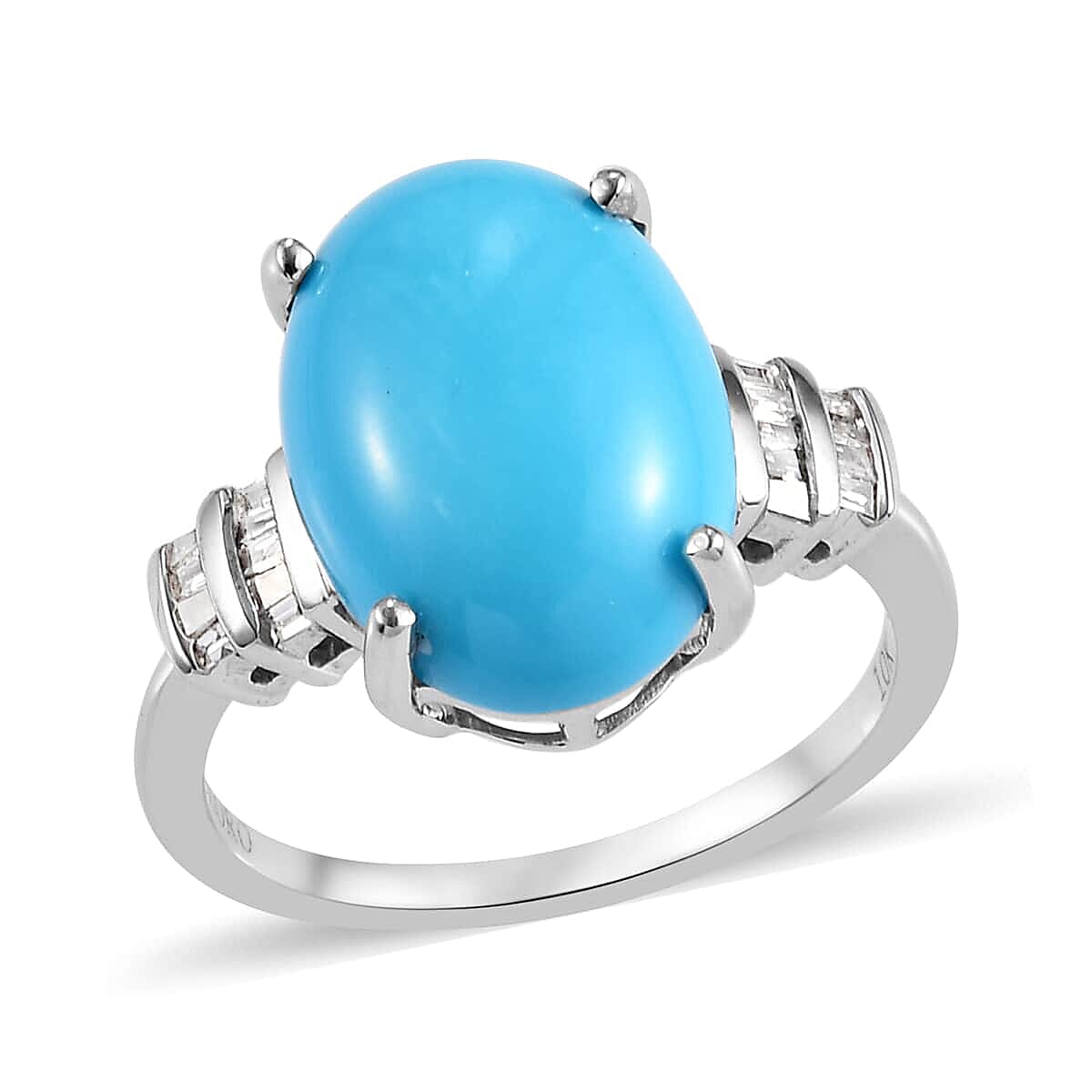 Luxoro 10K White Gold Premium Sleeping Beauty Turquoise, Diamond Ring (Size 10.0) 5.00 ctw