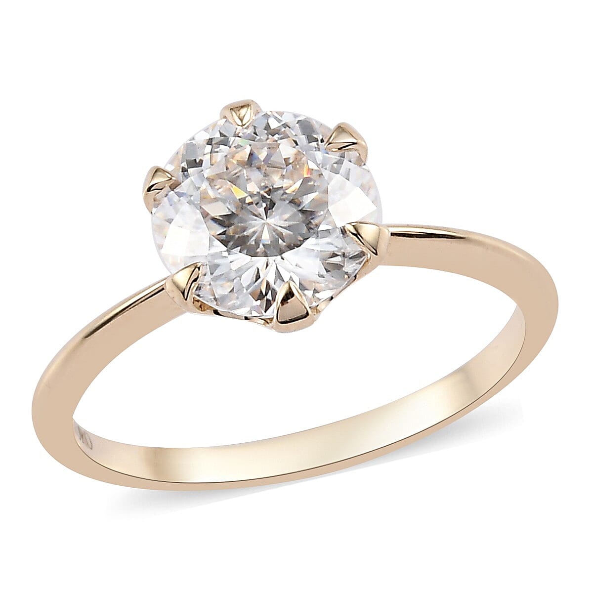 Luxoro 10K Yellow Gold 100 Facet Moissanite Solitaire Ring (Size 5.0) 1.90 ctw
