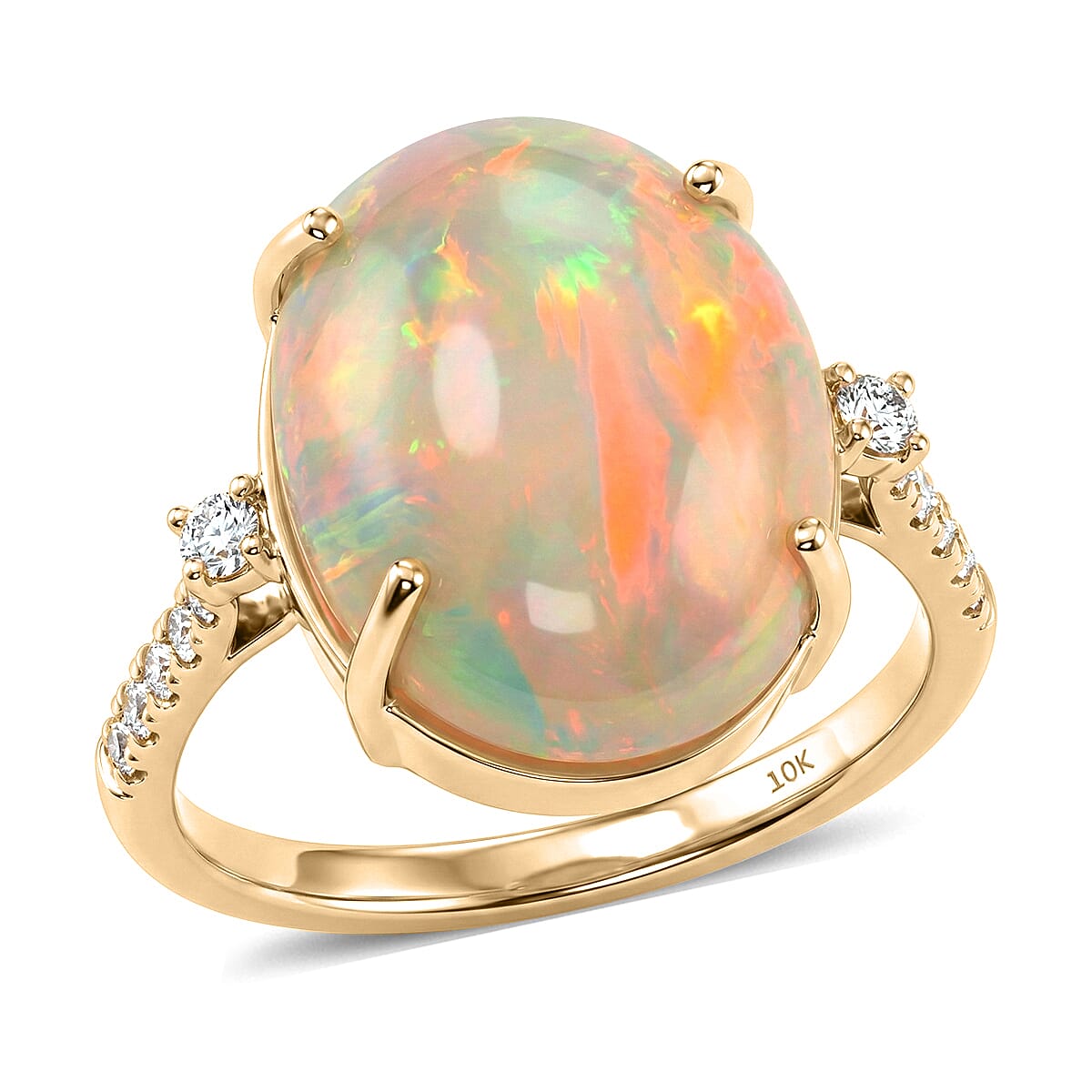 Luxoro 10K Yellow Gold AAA Ethiopian Welo Opal, Diamond (I2) Ring (Size 10.0) 7.40 ctw