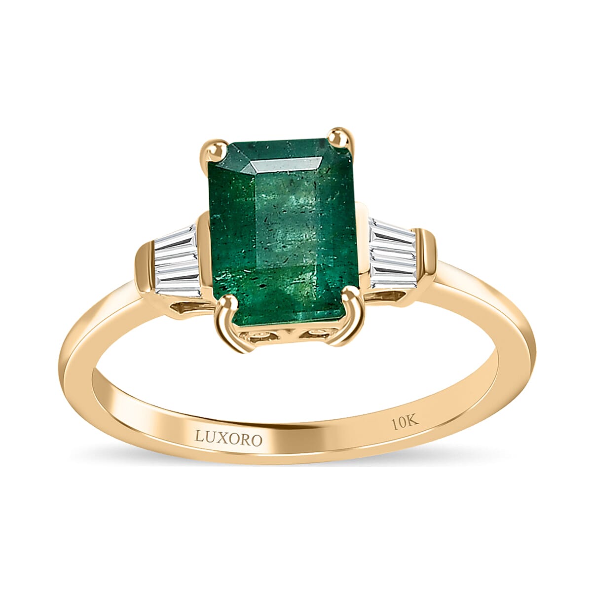 Luxoro 10K Yellow Gold AAA Kagem Zambian Emerald and G-H I3 Diamond Ring (Size 8.5) 2.00 ctw