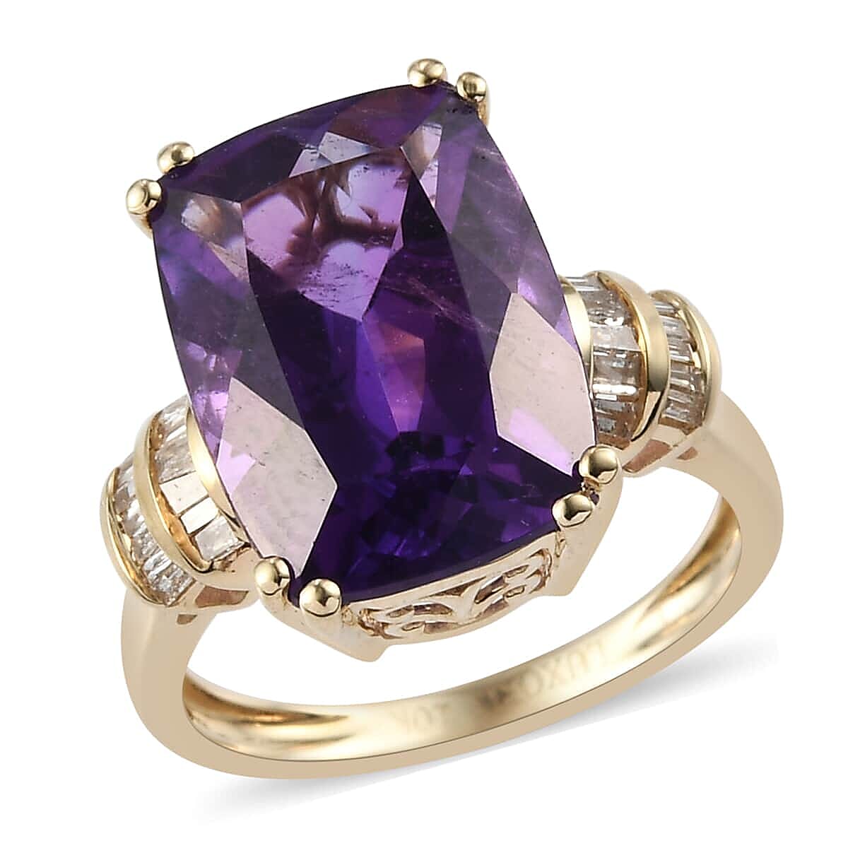 Luxoro 10K Yellow Gold AAA Lusaka Amethyst, Diamond (0.20 cts) Ring (Size 6.5) 6.75 ctw