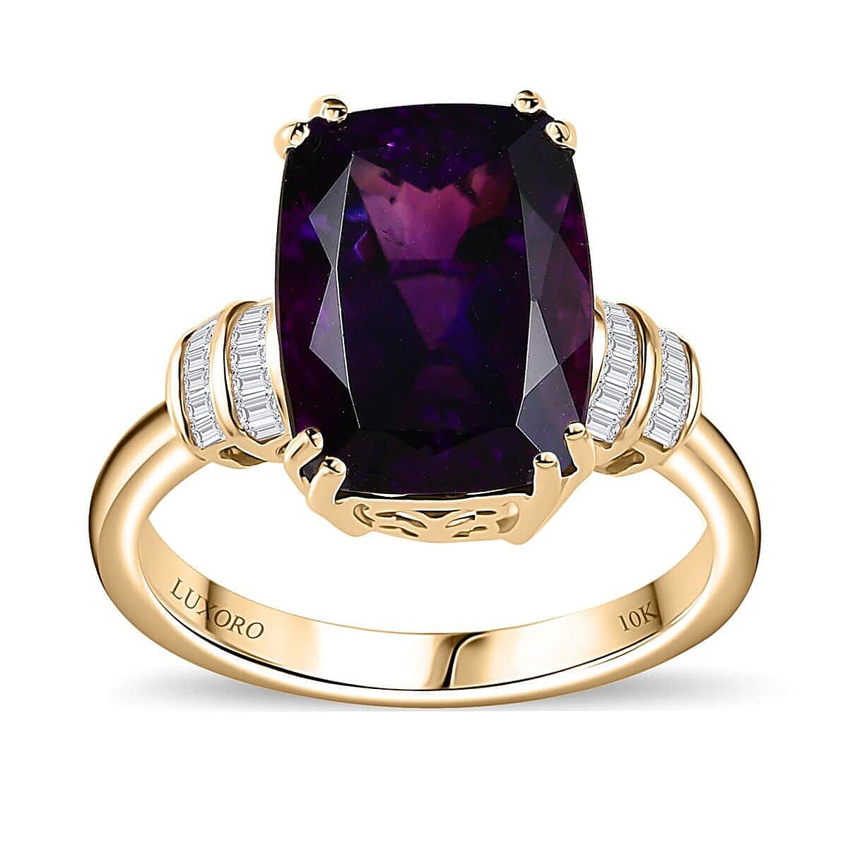 Luxoro 10K Yellow Gold AAA Moroccan Amethyst and G-H I2 Diamond Ring (Size 7.5) 7.00 ctw