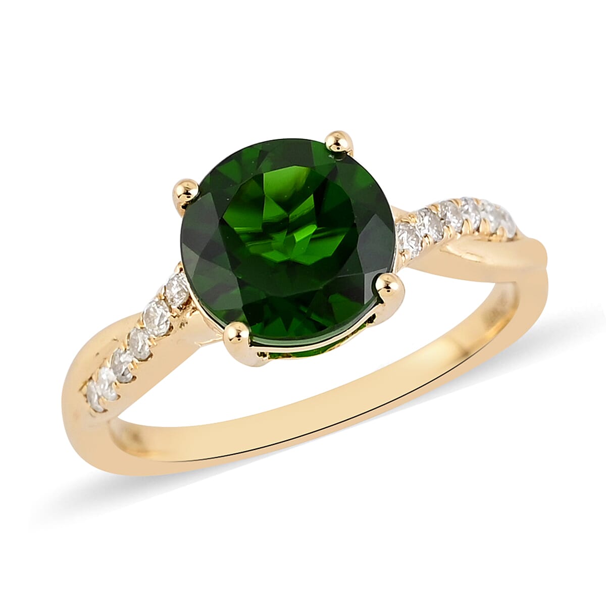 Luxoro 10K Yellow Gold AAA Natural Chrome Diopside and G-H I2 Diamond Infinity Shank Ring (Size 7.0) 2.40 ctw