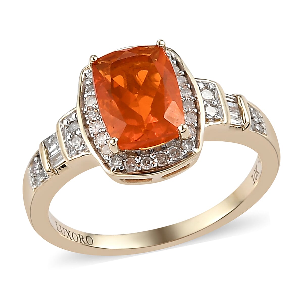 Luxoro 10K Yellow Gold AAA Premium Mexican Fire Opal and Diamond Ring (Size 9.5) 1.25 ctw