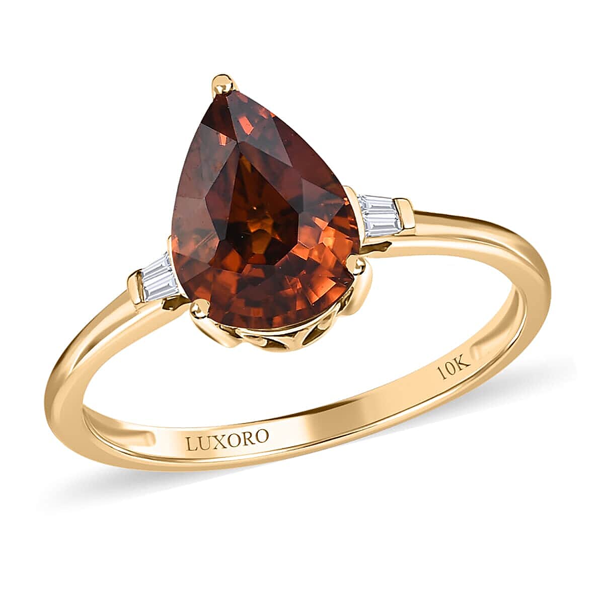 Melt in the tempting allure of this Luxoro AAA red zircon and diamond ring. Radiating a powerful glow, the authentic red zircon heart, embraced by committed craftsmanship, stands bold and empowering. Flanked by diamonds, this ring is a symphony of warmth, trust, and sophistication. Wear it and let the world feel your undeniable presence.