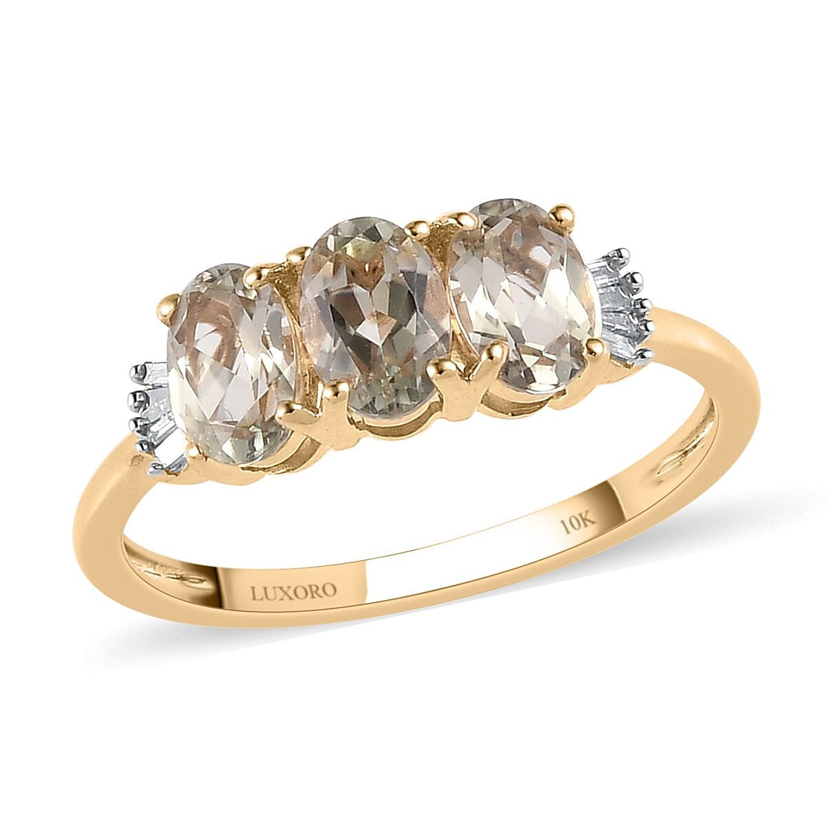 Luxoro 10K Yellow Gold AAA Turkizite and G-H I3 Diamond Trilogy Ring (Size 7.0) 1.50 ctw