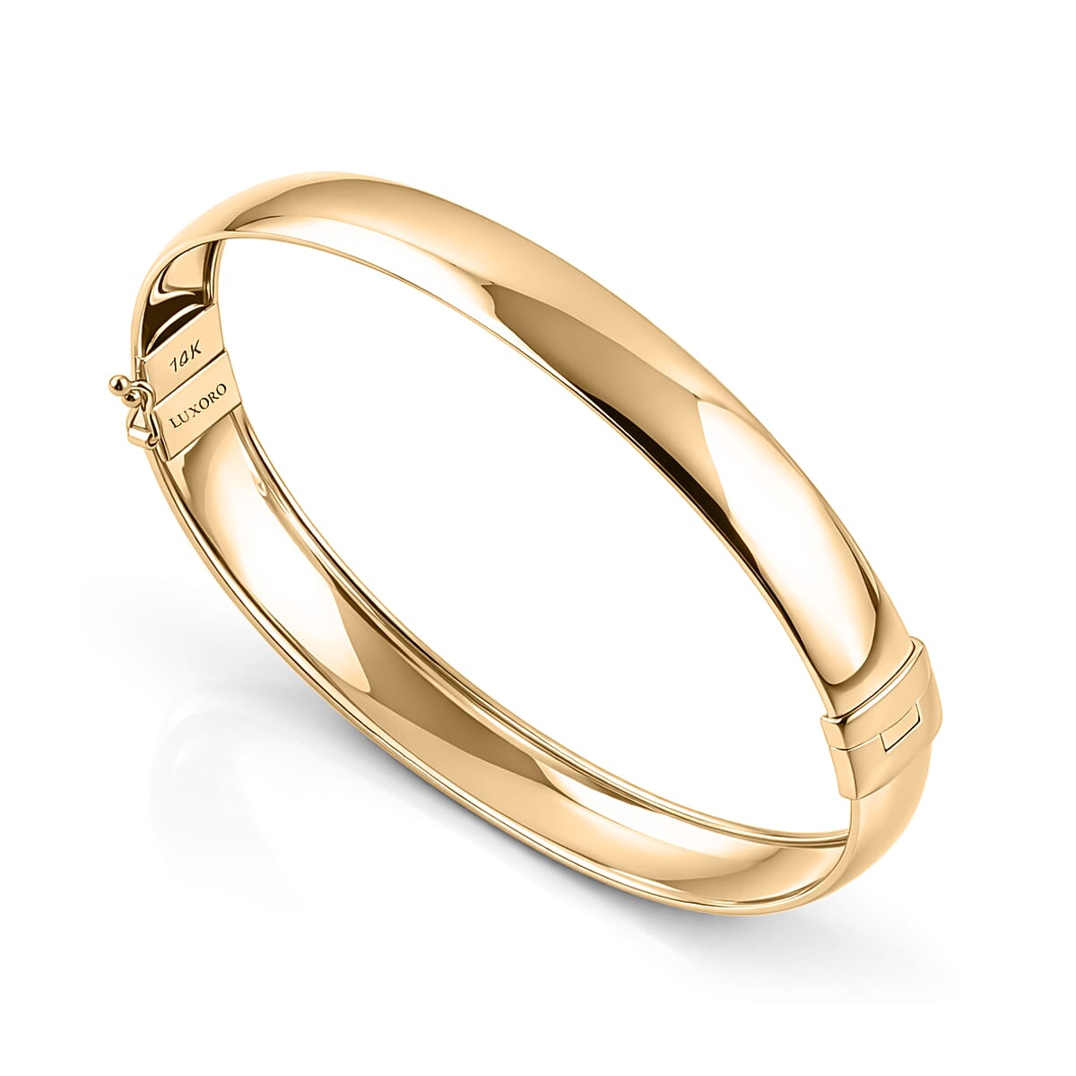 Elevate your collection with this Luxuro bangle bracelet in 10K yellow gold. This luxury fashion bracelet for women showcases radiant shine and classic simplicity. Designed for effortless elegance, it complements both daily wear and special occasions.