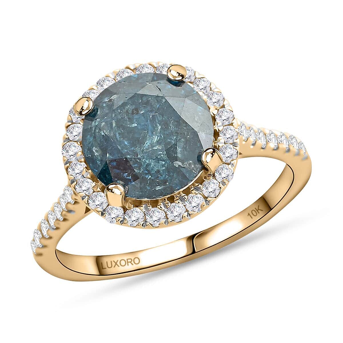 Luxoro 10K Yellow Gold Blue Diamond and G-H I3 Diamond Ring (Size 8.0) 3.50 ctw