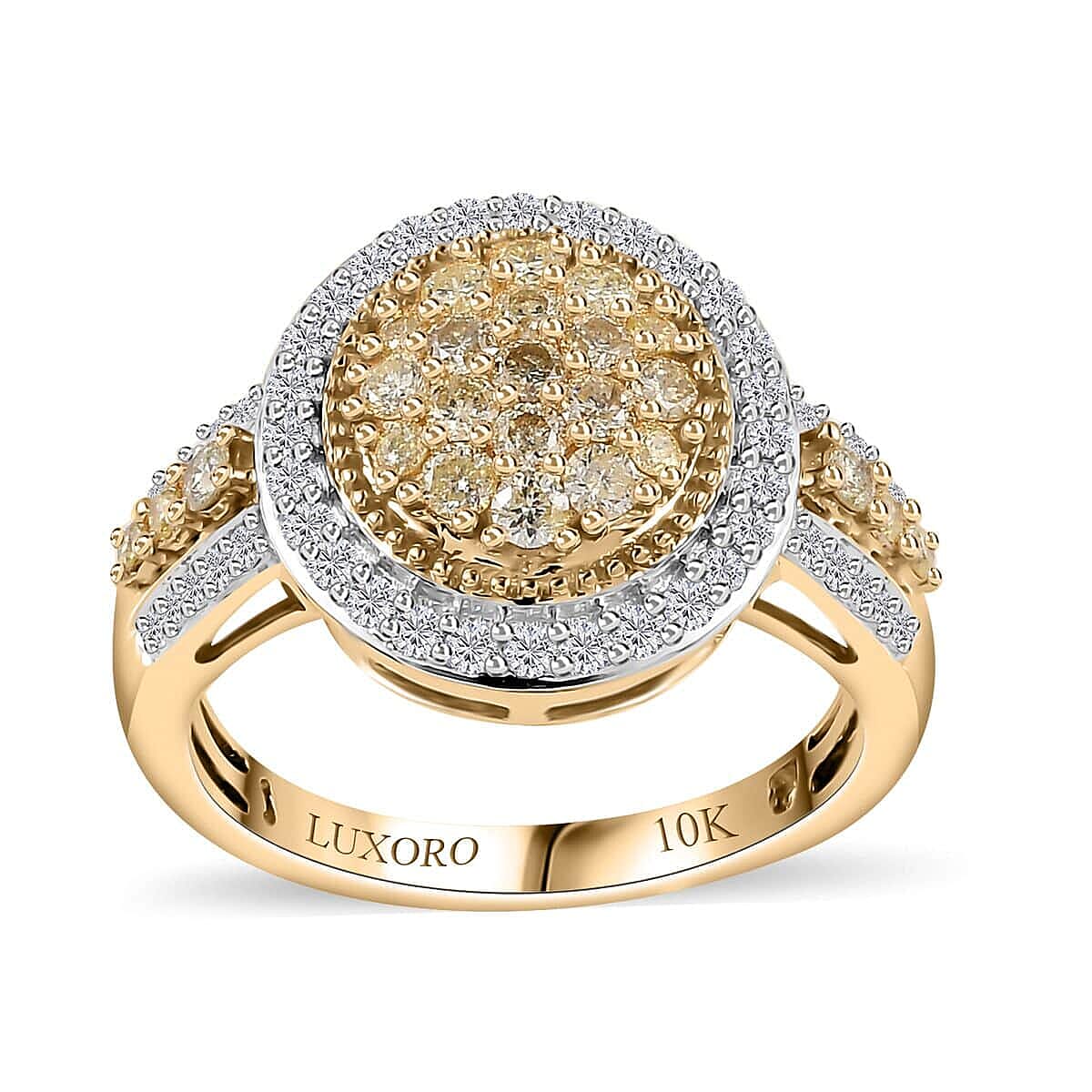 Luxoro 10K Yellow Gold I3 Natural Yellow and White Diamond Ring (Size 9.5) 4.45 Grams 1.00 ctw