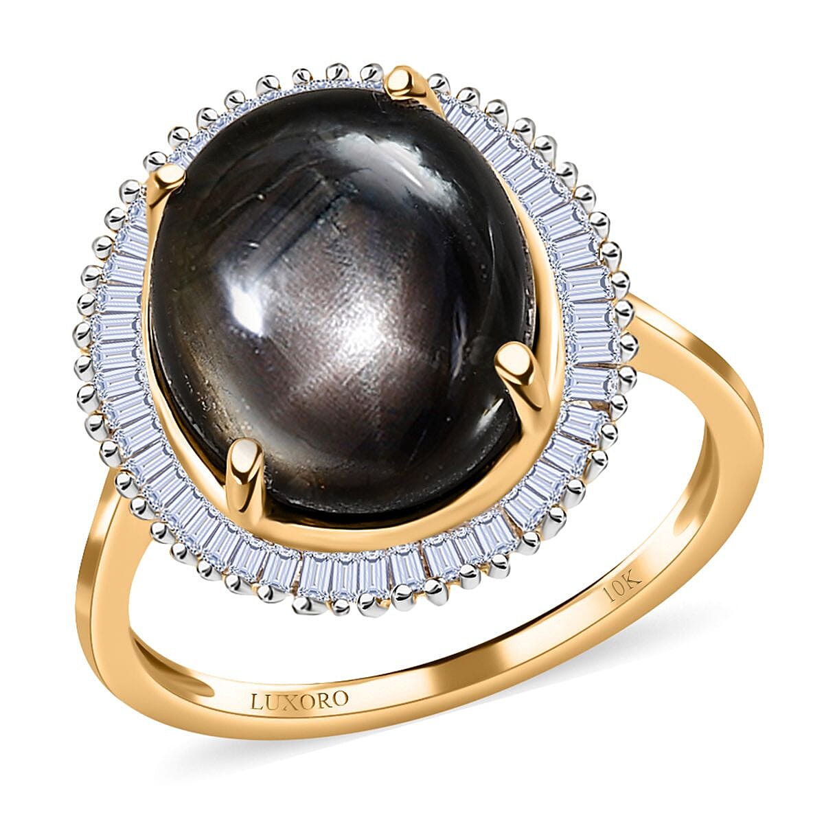 Luxoro 10K Yellow Gold Premium Bankacha Natural Black Star Sapphire and G-H I3 Diamond Halo Ring (Size 10.5) 8.00 ctw