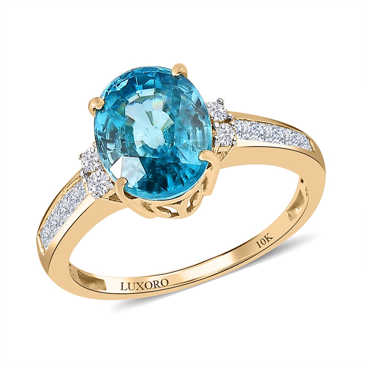 Evoke envy with the Luxoro premium Cambodian blue zircon ring—a shimmering marvel of the Luxoro Collection. As it nestles elegantly on your finger, this 10K yellow gold ring creates a symphony of sparkle, capturing both admiration and emotions.