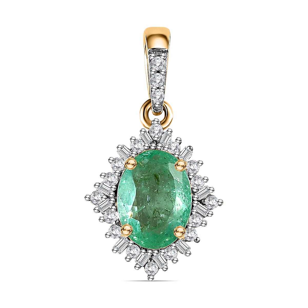 Luxoro 10K Yellow Gold Premium Ethiopian Emerald and G-H I3 Diamond Halo Pendant without Chain 1.40 ctw