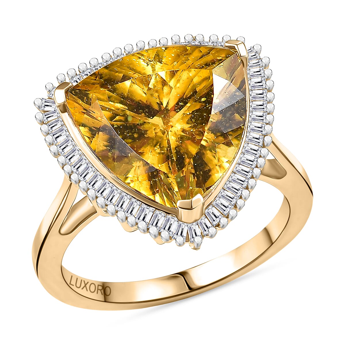 Luxoro 10K Yellow Gold Premium Golden Apatite, Diamond (G-H, I2) Ring (Size 6.0) 7.65 ctw